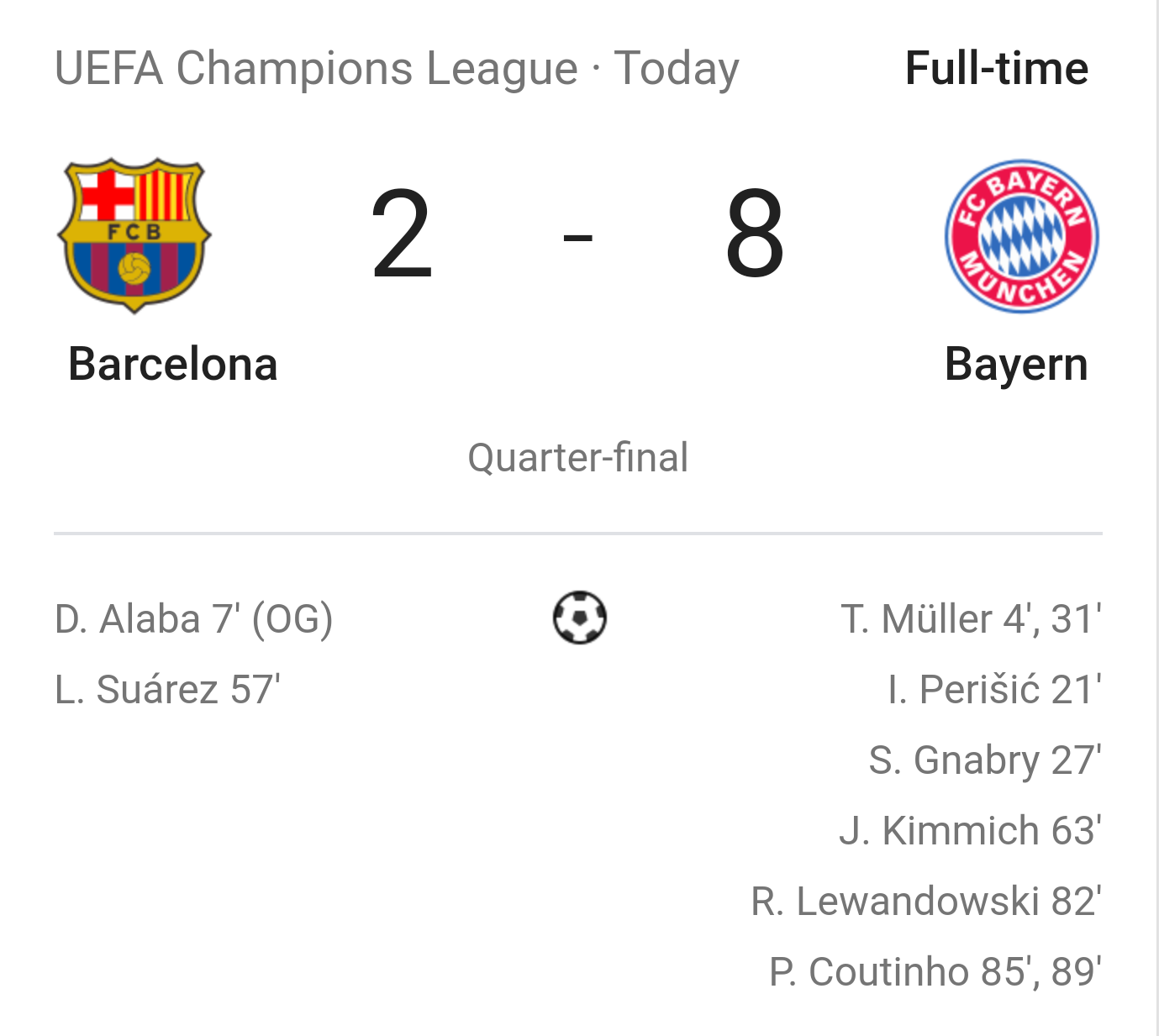 Barcelona 2 8 Bayern Munich Bayern Destroy Barca In Champions League Quarter Final 2019 20 As Com