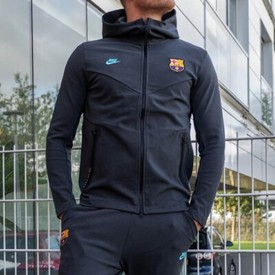 Nike Fc Barcelona 2018 19 Nsw Tech Fleece Hoodie Authentic Mens Replica Hoodies Obsidian Obsidian Heather Metallic Silver Pro Direct Soccer